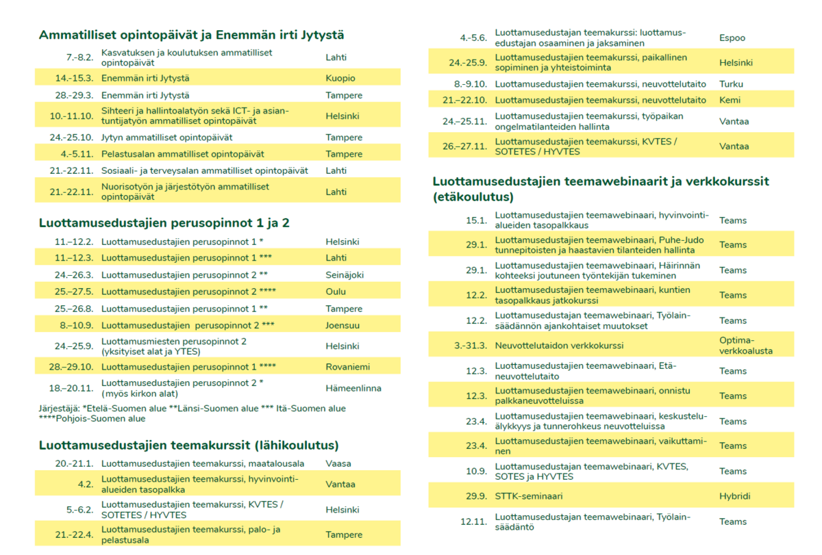 Jytyn koulutuskalenteri 2026 Koulutuskalenteri - Ammattiliitto Jyty
